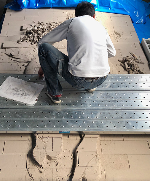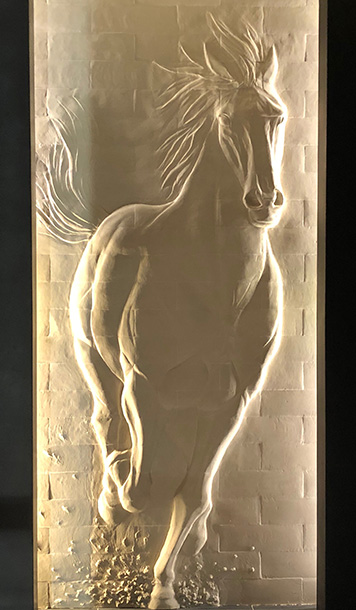 オリンピック馬術競技開催場所である馬事公苑において世界各国の貴賓が集まるエントランス風除室正面に施工。構想、デザイン、製作に至るまで約3年を経ている。