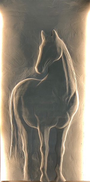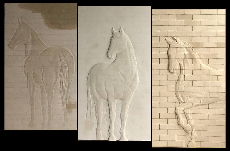 過去のオリンピック馬術競技で唯一日本に金メダルをもたらしたレジェンド、西竹一(バロン西)大佐と愛馬・ウラヌス号に敬意を表し製作しており、作品のコンセプトとして今一度双方を人馬一如、会いまみえさせたいという思いで、西大佐の終焉の地である硫黄島の石とウラヌス号の終焉の地と言われている馬事公苑の土を混入した粘土で煉瓦を製作し焼き上げた。