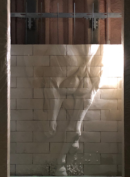 作品はウラヌス号の実物大(体高181cm)の迫力ある壁となっており、表層は人研ぎで磨いており自由に手で触れることが出来る。
