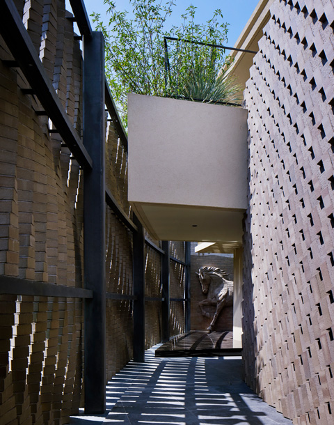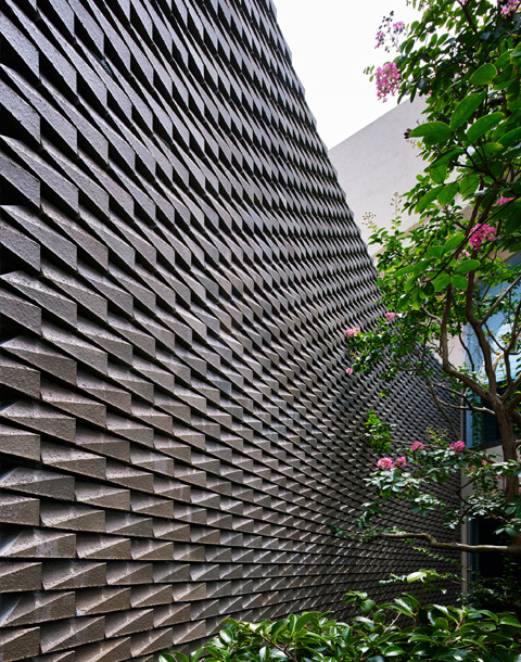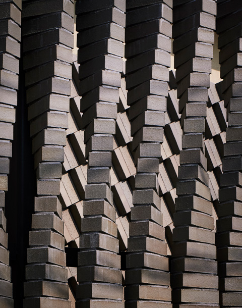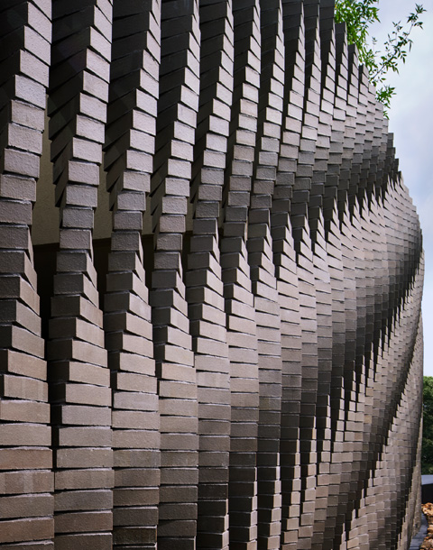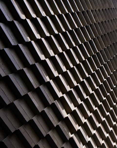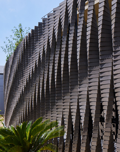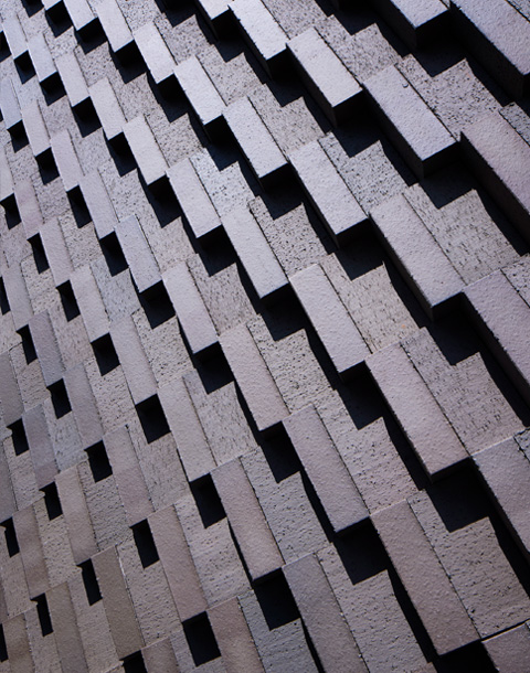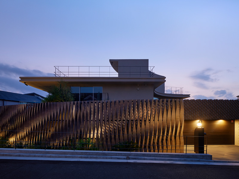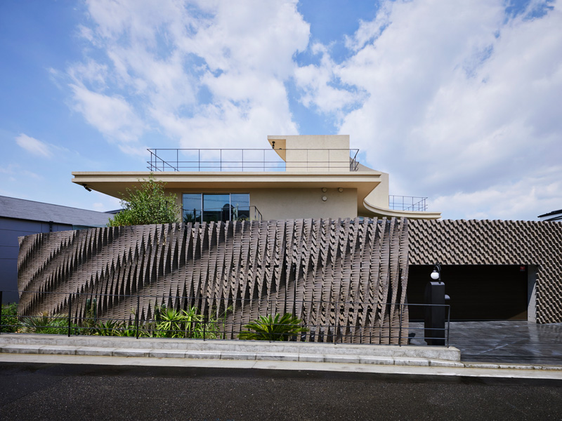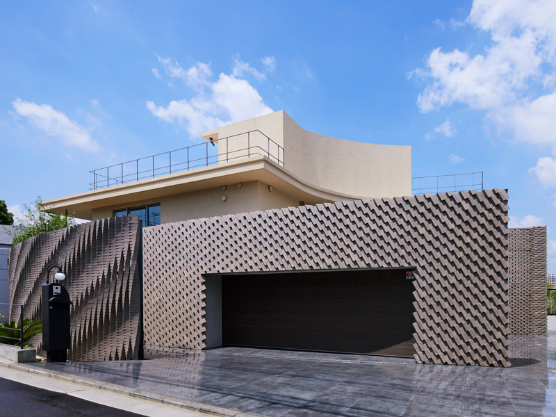 横浜の高台に位置する個人邸。 正面ファサードは山手の風をコンセプトに積んだスパイラル積み。 その奥には開港当時の山手地区の呼称であるブラフ(崖)をイメージしたレンガ積み 中庭には横浜港の水面を表現している。